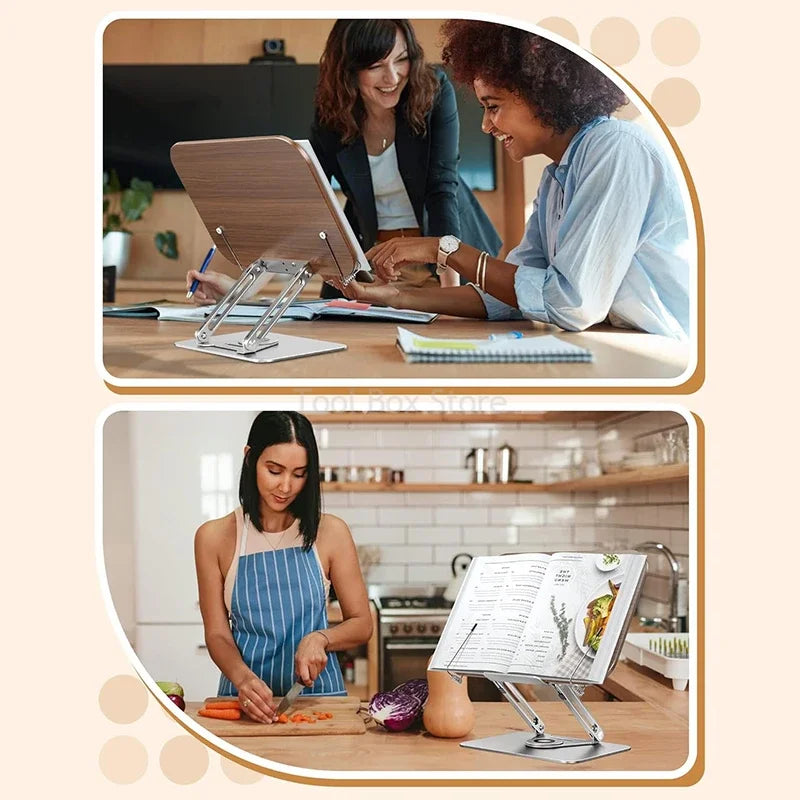 Elevate your reading and workspace with this Adjustable Book Stand, crafted from durable aluminum alloy and elegant wood in a warm brown finish. Its flexible long arm and 360° rotating base allow precise positioning, making it ideal for books, tablets, or laptops. Designed to support high loads, it enables comfortable reading, writing, and multimedia use directly on the stand. Combining functionality with refined aesthetics, it’s a practical, thoughtful gift for both home and office environments.